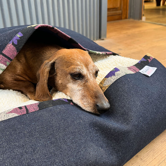 Saco de dormir mascota denim azul 74X70 cms